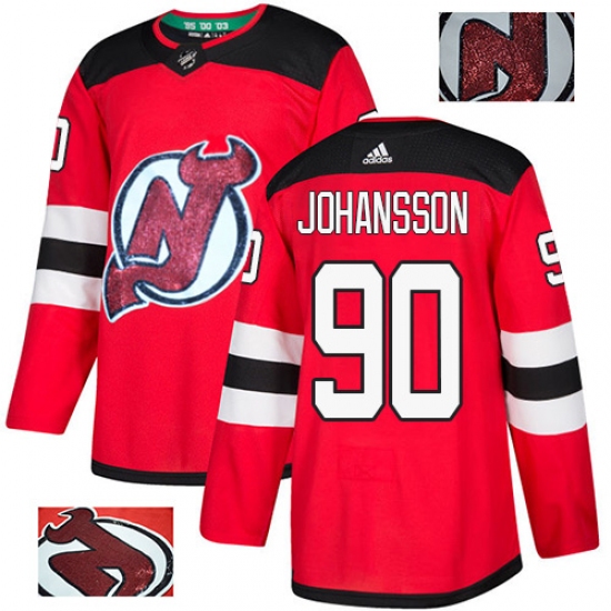 Men's Adidas New Jersey Devils #90 Marcus Johansson Authentic Red Fashion Gold NHL Jersey
