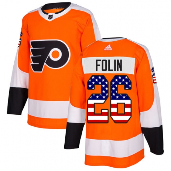 Men's Adidas Philadelphia Flyers #26 Christian Folin Authentic Orange USA Flag Fashion NHL Jersey