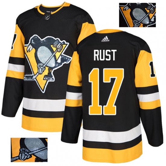 Men's Adidas Pittsburgh Penguins #17 Bryan Rust Authentic Black Team Logo Fashion NHL Jersey
