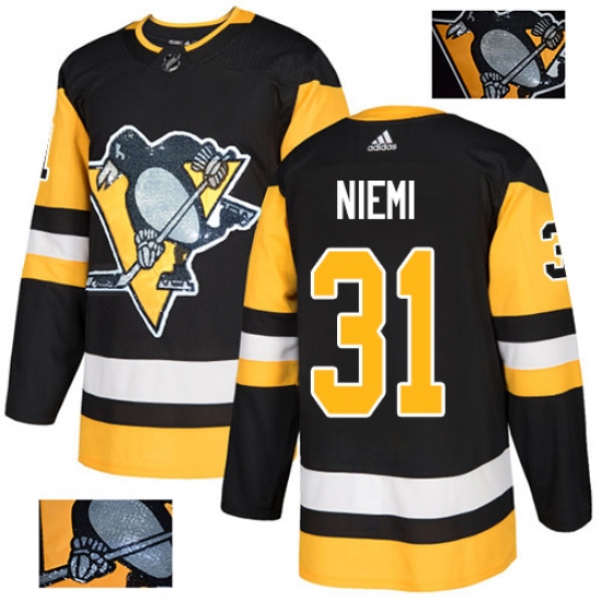 Men's Adidas Pittsburgh Penguins #31 Antti Niemi Authentic Black Fashion Gold NHL Jersey