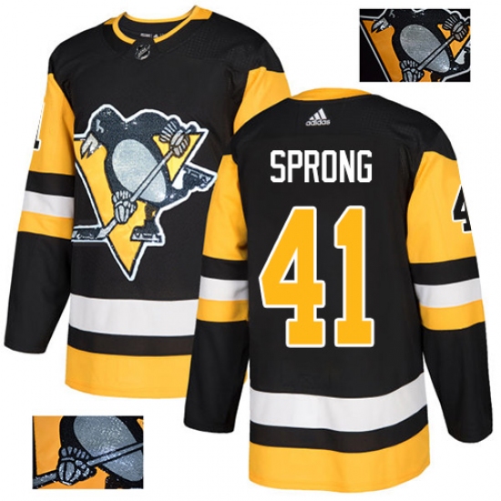 Men's Adidas Pittsburgh Penguins #41 Daniel Sprong Authentic Black Team Logo Fashion NHL Jersey