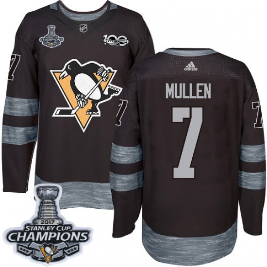 Men's Adidas Pittsburgh Penguins #7 Joe Mullen Authentic Black 1917-2017 100th Anniversary 2017 Stanley Cup Champions NHL Jersey