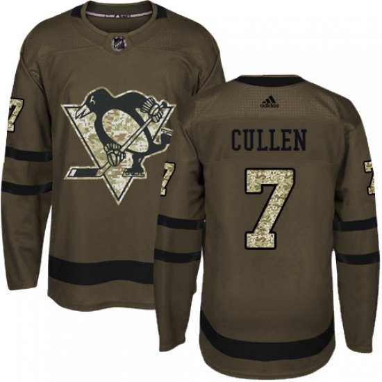 >Men's Adidas Pittsburgh Penguins #7 Matt Cullen Authentic Green Salute to Service NHL Jersey