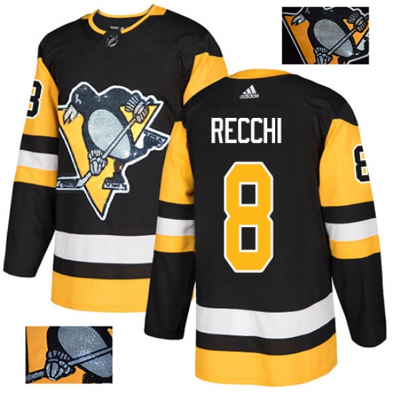 >Men's Adidas Pittsburgh Penguins #8 Mark Recchi Authentic Black Fashion Gold NHL Jersey