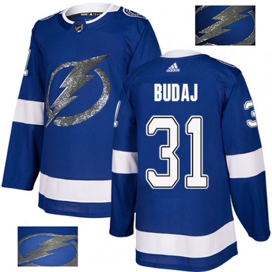 Men's Adidas Tampa Bay Lightning #31 Peter Budaj Authentic Royal Blue Fashion Gold NHL Jersey