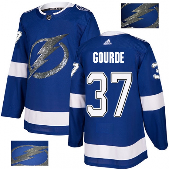 Men's Adidas Tampa Bay Lightning #37 Yanni Gourde Authentic Royal Blue Fashion Gold NHL Jersey
