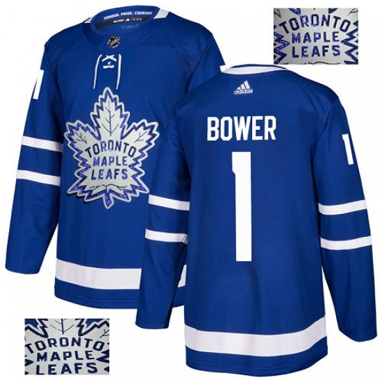 Men's Adidas Toronto Maple Leafs #1 Johnny Bower Authentic Royal Blue Fashion Gold NHL Jersey