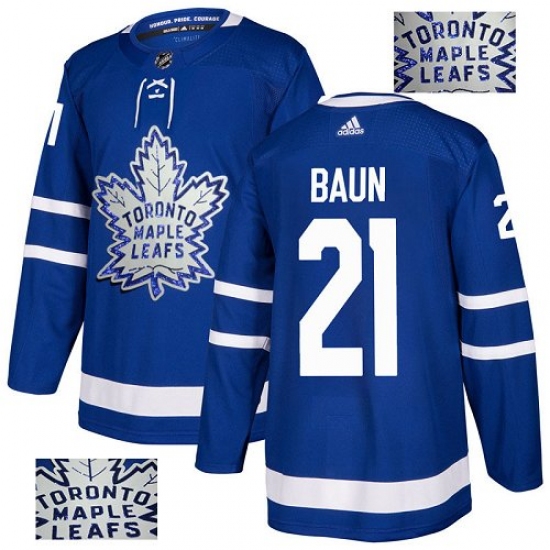 Men's Adidas Toronto Maple Leafs #21 Bobby Baun Authentic Royal Blue Fashion Gold NHL Jersey