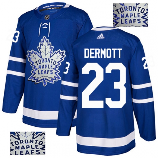 Men's Adidas Toronto Maple Leafs #23 Travis Dermott Authentic Royal Blue Fashion Gold NHL Jersey