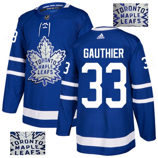 Men's Adidas Toronto Maple Leafs #33 Frederik Gauthier Authentic Royal Blue Fashion Gold NHL Jersey