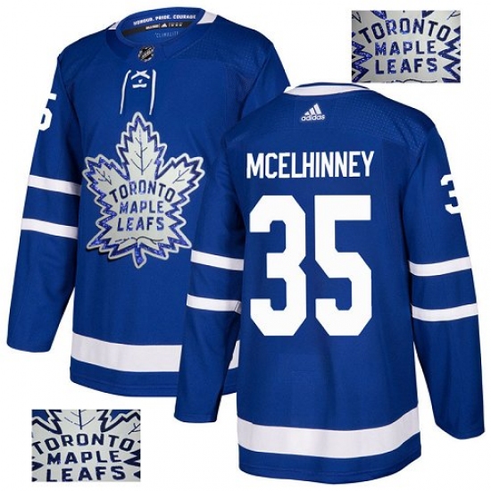 Men's Adidas Toronto Maple Leafs #35 Curtis McElhinney Authentic Royal Blue Fashion Gold NHL Jersey