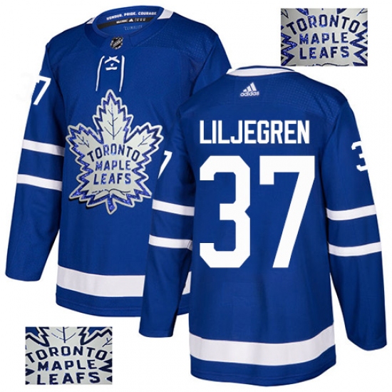 Men's Adidas Toronto Maple Leafs #37 Timothy Liljegren Authentic Royal Blue Fashion Gold NHL Jersey