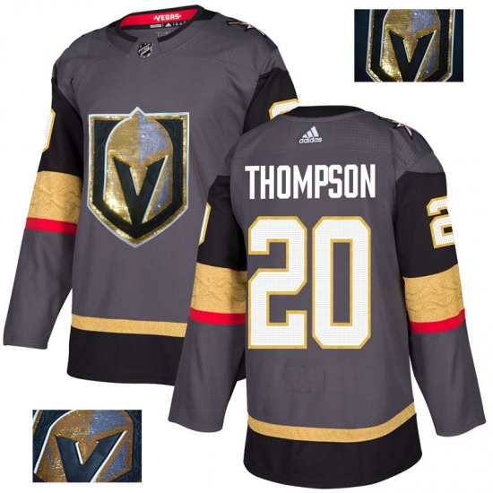 >Men's Adidas Vegas Golden Knights #20 Paul Thompson Authentic Gray Fashion Gold NHL Jersey