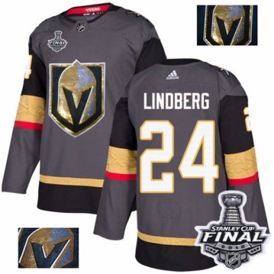 Men's Adidas Vegas Golden Knights #24 Oscar Lindberg Authentic Gray Home 2018 Stanley Cup Final NHL Jersey