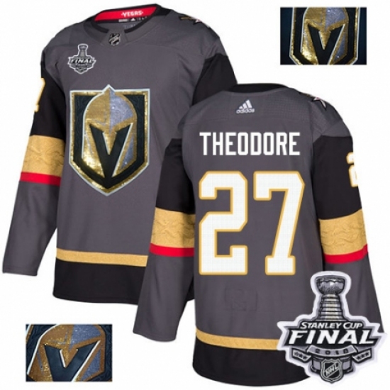 >Men's Adidas Vegas Golden Knights #27 Shea Theodore Authentic Gray Fashion Gold 2018 Stanley Cup Final NHL Jersey
