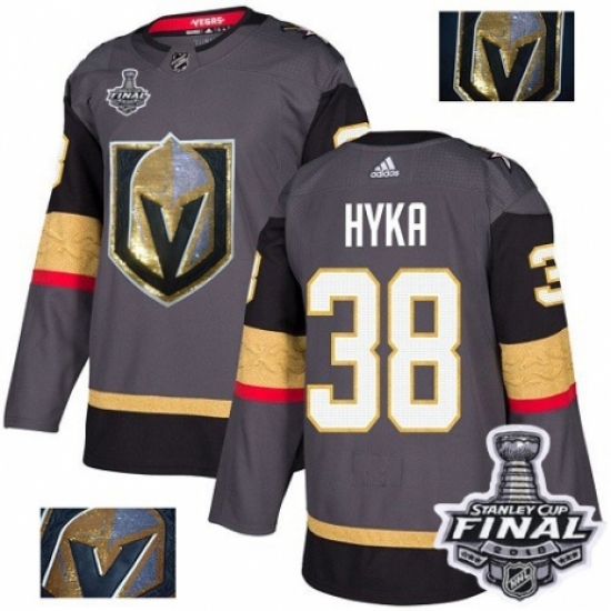 Men's Adidas Vegas Golden Knights #38 Tomas Hyka Authentic Gray Fashion Gold 2018 Stanley Cup Final NHL Jersey