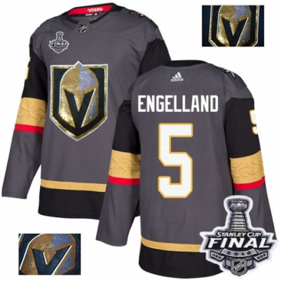 Men's Adidas Vegas Golden Knights #5 Deryk Engelland Authentic Gray Fashion Gold 2018 Stanley Cup Final NHL Jersey