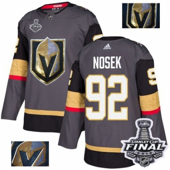 Men's Adidas Vegas Golden Knights #92 Tomas Nosek Authentic Gray Fashion Gold 2018 Stanley Cup Final NHL Jersey