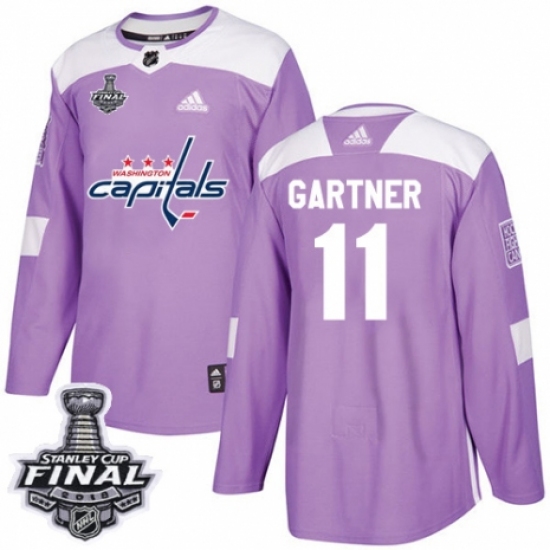 Men's Adidas Washington Capitals #11 Mike Gartner Authentic Purple Fights Cancer Practice 2018 Stanley Cup Final Champions NHL Jersey