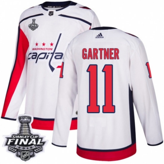 Men's Adidas Washington Capitals #11 Mike Gartner Authentic White Away 2018 Stanley Cup Final NHL Jersey