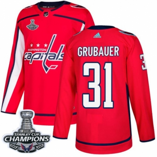 Men's Adidas Washington Capitals #31 Philipp Grubauer Premier Red Home 2018 Stanley Cup Final Champions NHL Jersey
