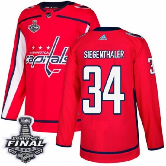 Men's Adidas Washington Capitals #34 Jonas Siegenthaler Premier Red Home 2018 Stanley Cup Final NHL Jersey