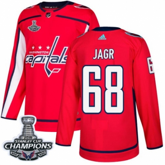 Men's Adidas Washington Capitals #68 Jaromir Jagr Premier Red Home 2018 Stanley Cup Final Champions NHL Jersey