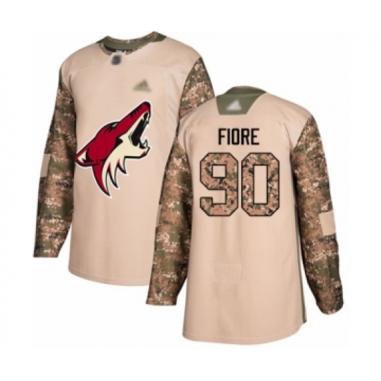 >Men's Arizona Coyotes #90 Giovanni Fiore Authentic Camo Veterans Day Practice Hockey Jersey