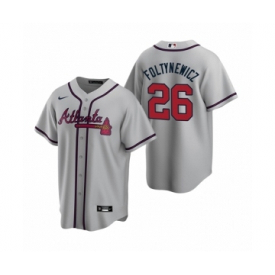 >Men's Atlanta Braves #26 Mike Foltynewicz Nike Gray 2020 Replica Road Jersey
