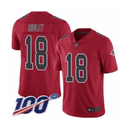>Men's Atlanta Falcons #18 Calvin Ridley Limited Red Rush Vapor Untouchable 100th Season Football Jersey