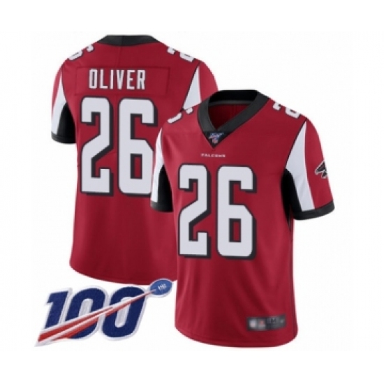 >Men's Atlanta Falcons #26 Isaiah Oliver Red Team Color Vapor Untouchable Limited Player 100th Season Football Jersey