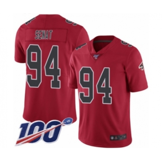 >Men's Atlanta Falcons #94 Deadrin Senat Limited Red Rush Vapor Untouchable 100th Season Football Jersey