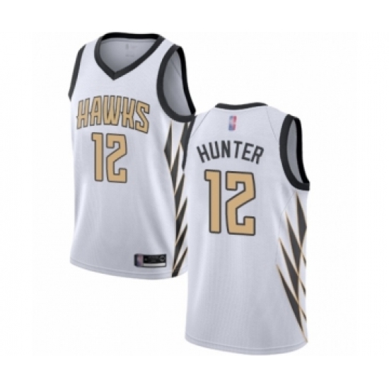 >Men's Atlanta Hawks #12 De'Andre Hunter Authentic White Basketball Jersey - City Edition