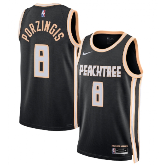 Men's Atlanta Hawks #8 Kristaps Porzingis Black 2025-26 City Edition Swingman Stitched Jersey