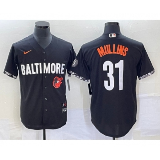 Men's Baltimore Orioles #31 Cedric Mullins Black 2023 City Connect Cool Base Stitched Jersey 1