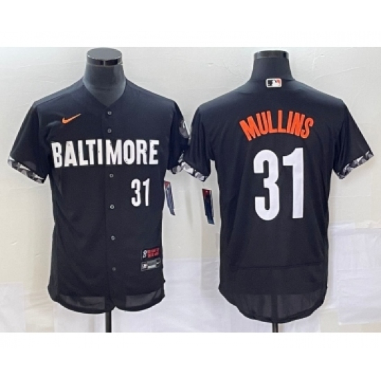 >Men's Baltimore Orioles #31 Cedric Mullins Number Black 2023 City Connect Flex Base Stitched Jersey 1