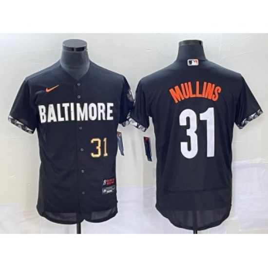 >Men's Baltimore Orioles #31 Cedric Mullins Number Black 2023 City Connect Flex Base Stitched Jersey 2