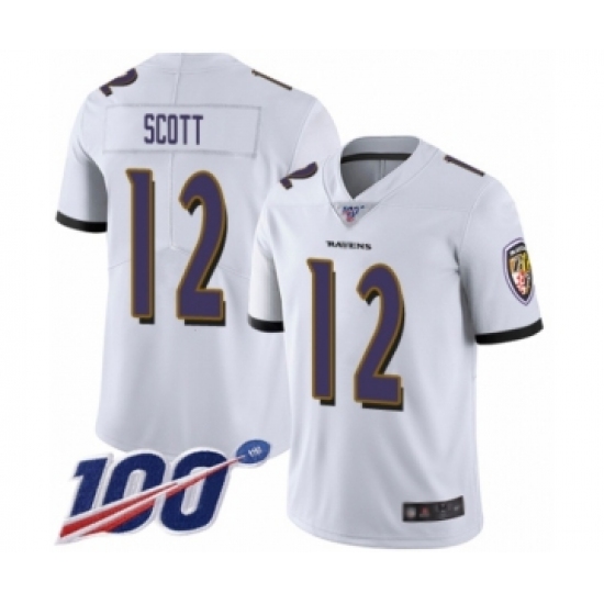 Men's Baltimore Ravens #12 Jaleel Scott White Vapor Untouchable Limited Player 100th Season Football Jersey