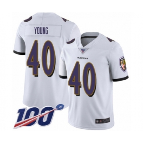 >Men's Baltimore Ravens #40 Kenny Young White Vapor Untouchable Limited Player 100th Season Football Jersey