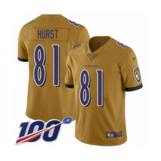Men's Baltimore Ravens #81 Hayden Hurst Limited Gold Inverted Legend 100th Season Football Jersey