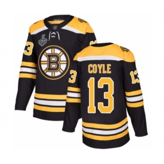 >Men's Boston Bruins #13 Charlie Coyle Authentic Black Home 2019 Stanley Cup Final Bound Hockey Jersey