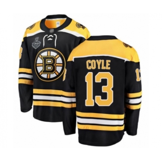 >Men's Boston Bruins #13 Charlie Coyle Authentic Black Home Fanatics Branded Breakaway 2019 Stanley Cup Final Bound Hockey Jersey