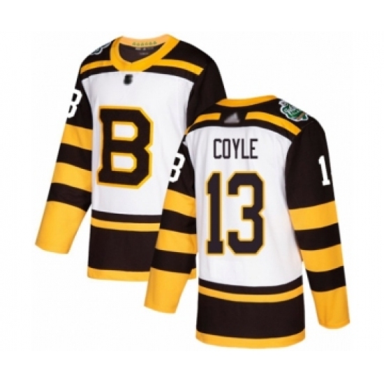 >Men's Boston Bruins #13 Charlie Coyle Authentic White 2019 Winter Classic Hockey Jersey