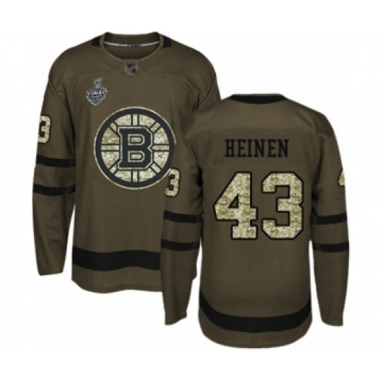 Men's Boston Bruins #43 Danton Heinen Authentic Green Salute to Service 2019 Stanley Cup Final Bound Hockey Jersey