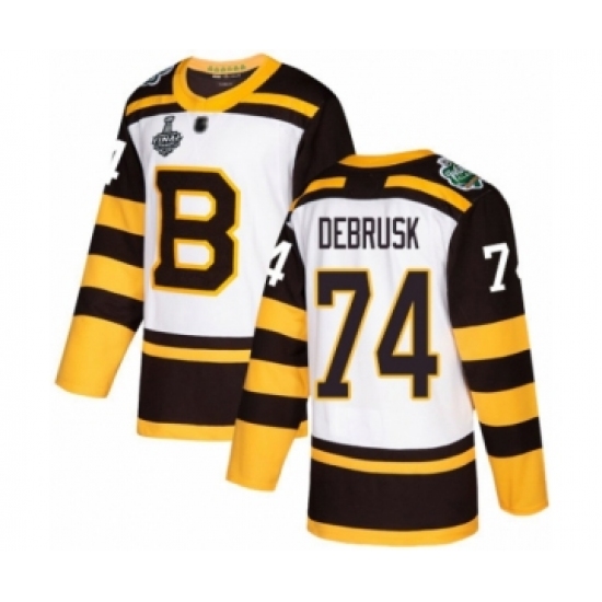 Men's Boston Bruins #74 Jake DeBrusk Authentic White Winter Classic 2019 Stanley Cup Final Bound Hockey Jersey