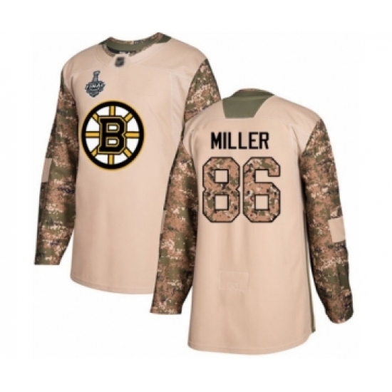 >Men's Boston Bruins #86 Kevan Miller Authentic Camo Veterans Day Practice 2019 Stanley Cup Final Bound Hockey Jersey