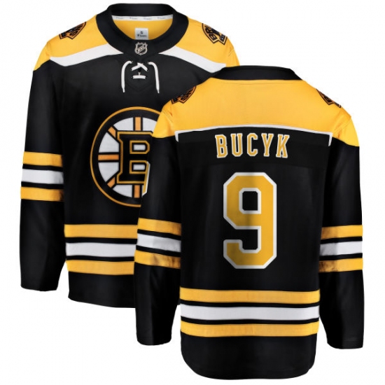 Men's Boston Bruins #9 Johnny Bucyk Authentic Black Home Fanatics Branded Breakaway NHL Jersey