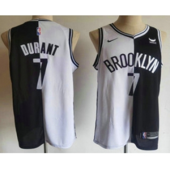 Men's Brooklyn Nets #7 Kevin Durant White Black Two Tone Stitched Swingman Nike Jersey With Sponsor