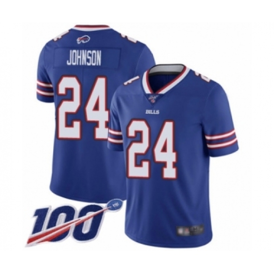 Men's Buffalo Bills #24 Taron Johnson Royal Blue Team Color Vapor Untouchable Limited Player 100th Season Football Jersey