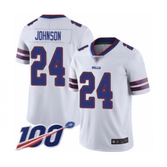 >Men's Buffalo Bills #24 Taron Johnson White Vapor Untouchable Limited Player 100th Season Football Jersey